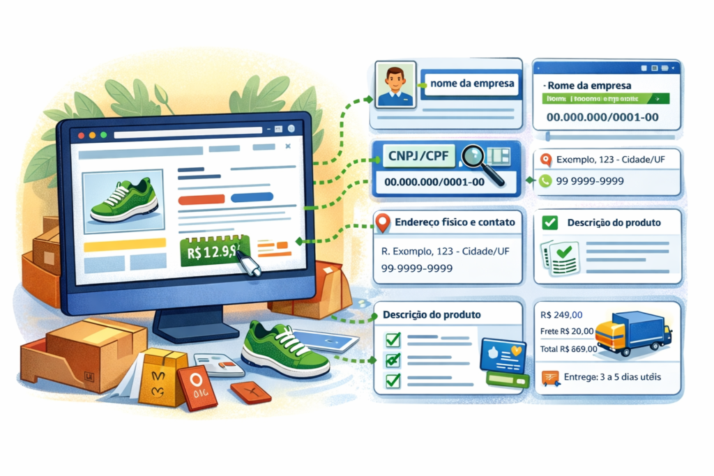 De acordo com o decreto, as lojas virtuais são obrigadas a disponibilizar informações claras e visíveis sobre quem está vendendo, como razão social, CNPJ, endereço físico e canais de atendimento.